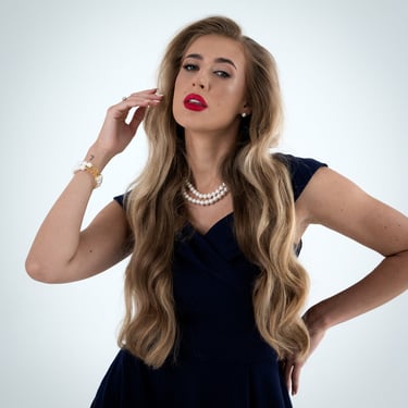 Amžina elegancija, kuri niekada neišeina iš mados. Subtili klasika su perlais ir rafinuota suknele – tai stilius, kuris spinduliuoja pasitikėjimu savimi, moteriškumu ir nepriekaištingu skoniu.