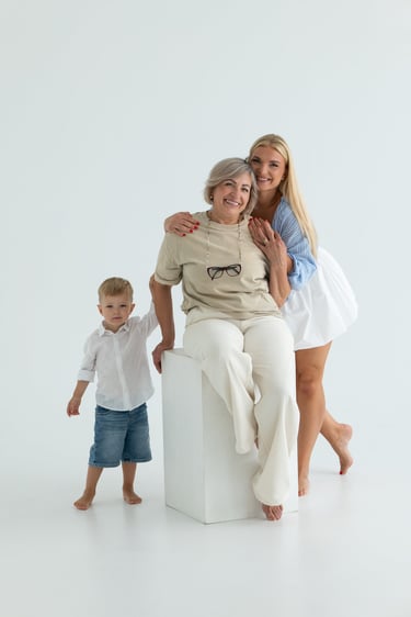 Šeimos fotosesija – tai laikas, kai sustoja kasdienis šurmulys ir visi susiburia drauge. Nesvarbu, ar tai pirmoji jūsų fotosesija, ar tradicija – svarbiausia, kad ji atspindėtų jūsų artumą, šypsenas ir tikrą ryšį. Fotosesijos vyksta profesionalioje studijoje, kur sukuriama jauki ir natūrali atmosfera, padedanti visiems jaustis laisvai – nuo mažiausių iki suaugusių. Fotografas pasirūpina, kad kiekvienas kadras būtų tikras, nuoširdus ir harmoningas, o pozos bei emocijos atrodytų natūraliai. Iš visos fotosesijos parenkamos gražiausios akimirkos, o pasirinktos nuotraukos švelniai retušuojamos – išlaikant jūsų natūralų grožį ir emocinį ryšį.